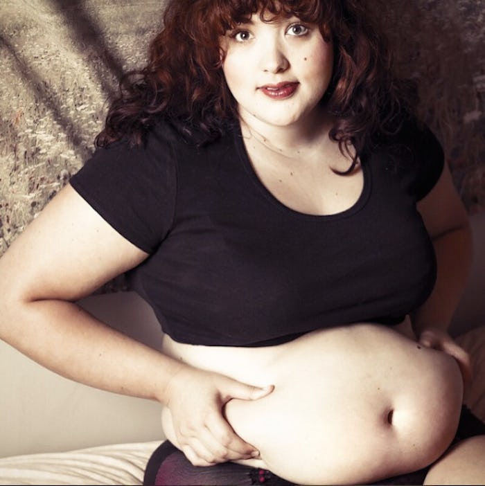 As is the case for a lot of women — and I'd argue fat women, especially — I've had a complex relationship with my tummy since late childhood. At various points in my life, it's caused me to feel ashamed. I've stared down at it while sitting down, noticing that it plops at my mid-thigh, and cried over its lack of flatness. I've covered it in baggy dresses, and hidden it beneath skirted bathing suits. I've gazed upon the images of women whom the world tells me are "aspirational," and chastised myself for being so far removed from them. Like most of us, I've spent a lot of time believing that fatness of any kind is bad; and that I'm a failure for being fat.