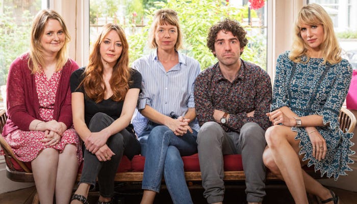 Horgan, Irish creator and star of Pulling, HBO's Divorce with Sarah Jessica Parker, and the BAFTA-winning Catastrophe, is talking to Romper by phone from her backyard in London about season one of the series (also nominated for a BAFTA), and, at the same time, second-guessing her own work-life balance. "I look at my teenage daughter and [think about] how she must see me, sitting in the backyard right now, yacking about my shows on the phone with someone seven thousand miles away," she says.