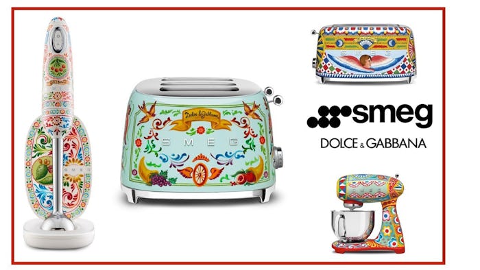 The prices aren't exactly on the low end, as I'm sure you can imagine. Just to give you an idea, a Dolce & Gabbana x SMEG fridge retails for around $50,000 at Neiman Marcus. But here's the very good news; after only being available in Europe initially, all of these items are now available — or soon to be — in the United States. And you can get the smaller items for a lot less than $50,000, which means you can feel like a super impressive fashionista but still pay your rent.