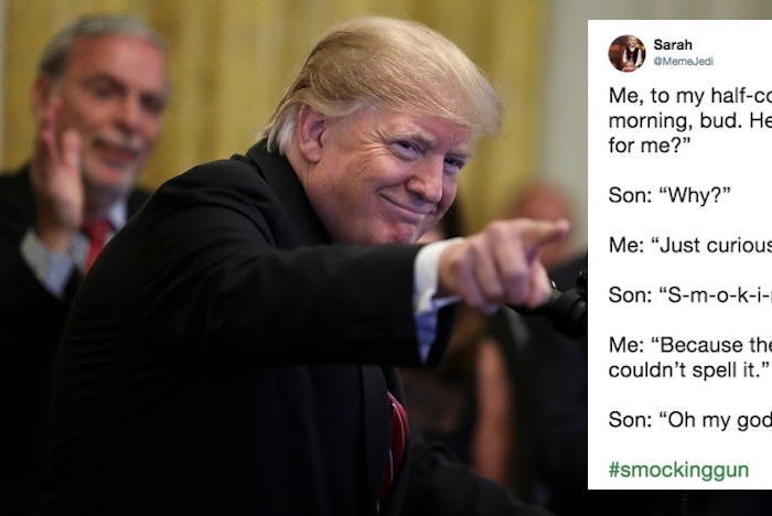 At this point, it feels like President Donald Trump might be putting typos in his tweets on purpose. Like on Monday morning, when Trump tweeted about a "Smocking Gun" — not once, but twice in one tweet — and the memes and funny tweets that it inspired will hopefully bring a chuckle to this distressing reality.