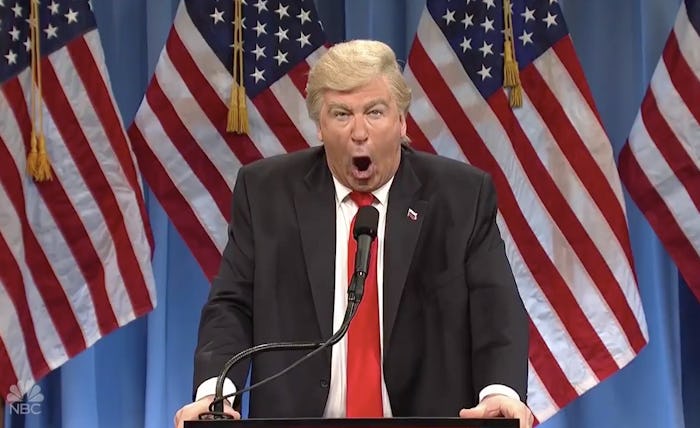 This weekend, Saturday Night Live returned just in time before the upcoming inauguration to give everyone a good laugh. And the SNL Donald Trump press conference cold open with Alec Baldwin was right on point when it came to highlighting how surreal the transition of power to the incoming administration really is. Let's face it — whether you're a Democrat or a Republican (or just wondering what's going on), Trump's first press conference as president-elect was pretty otherworldly.