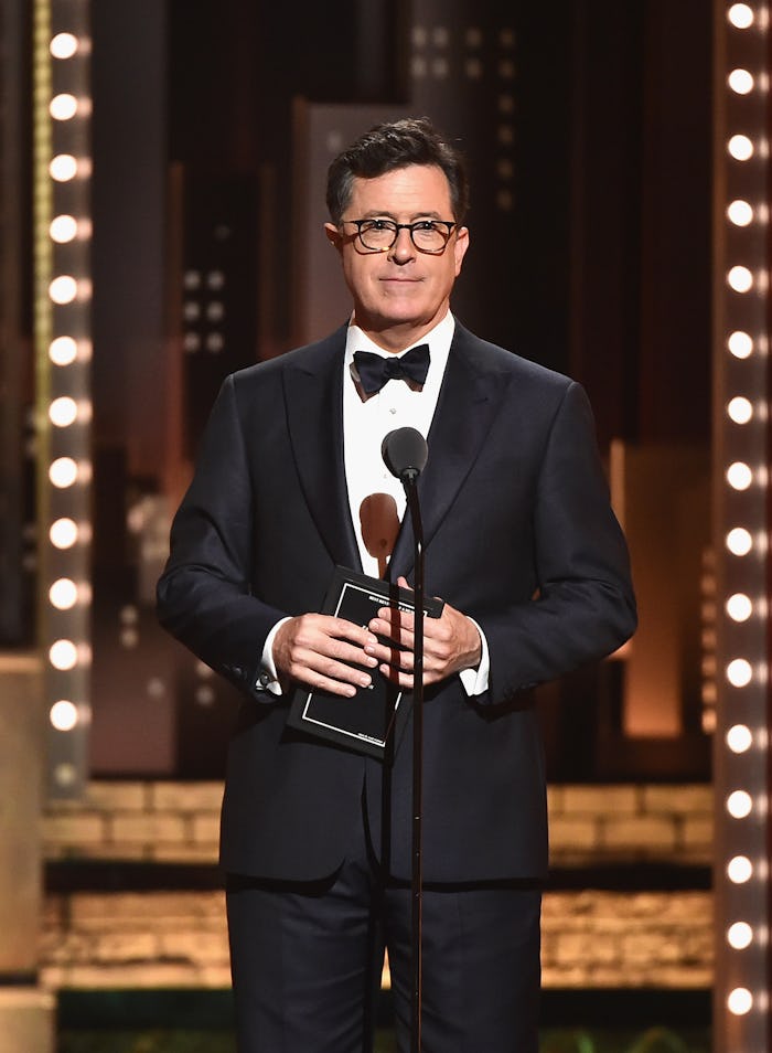 Expectations were high for Stephen Colbert on Sunday night. The host of CBS' Late Show With Stephen Colbert has never hosted The Emmy Awards before, and he's been having something of A Year. Colbert has been unapologetically incendiary throughout the recent politic upheaval, and has been gunning for President Trump especially. So when he took to the stage on Sunday night, the question wasn't whether Trump would be mentioned in Colbert's opening monologue, it was when. And how often. And how delicious would his sweet, sweet burns get?