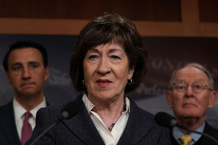 Republican Sen. Susan Collins from Maine has made it clear in the past that she's not above going against President Donald Trump or the rest of the Republican party when she doesn't agree with them. She made herself heard when it came to crucial votes for a potential Obamacare repeal back in 2017, and again when she disagreed with Trump's pick for Secretary of Education, Betsy DeVos. And it doesn't look like Collins is going to back down when it comes to the upcoming nomination for who will fill the vacant seat in the Supreme Court either. In a new interview with CNN, Collins said she won't support a SCOTUS nominee who demonstrates "hostility" toward abortion rights, which could make her vote a vital one to watch.