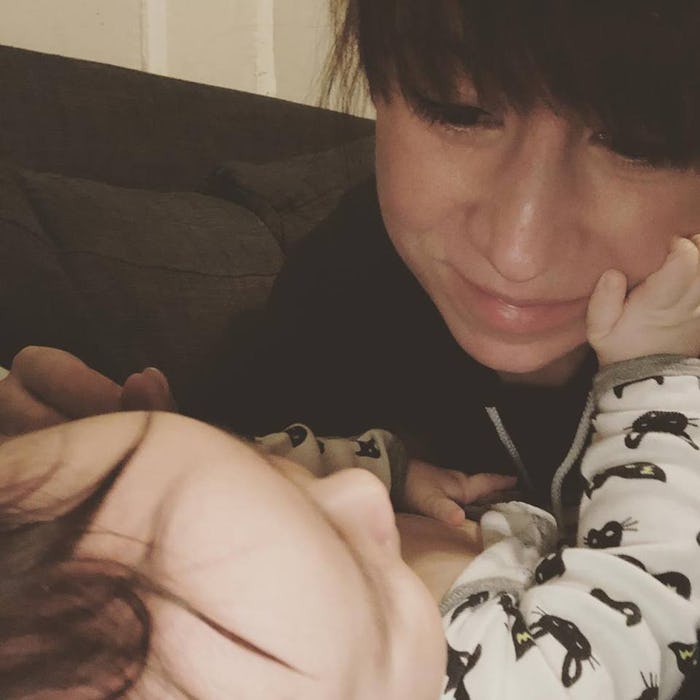 Worrying is also a normal part of motherhood, according to Smith. So telling a mom not to worry is essentially asking her to rewire her brain and defy centuries of evolution. "I don’t think any human can just force themselves to stop worrying," she says. "Anxiety is a feature, not a bug. Our evolutionary heritage programs moms to be on the lookout for danger." Some moms do have a bit more trouble assessing what's a real threat and what's an imaginary one, though, and Smith believes that trouble is the brain "recalibrating until it can find the right settings." This process of mental recalibration, according to Smith, takes "more time than moms allow themselves," and that society allows or facilitates, which is why the help of therapy, medication, and other support systems should be made available to new moms struggling with anxiety and feelings of intense overwhelm and worry.