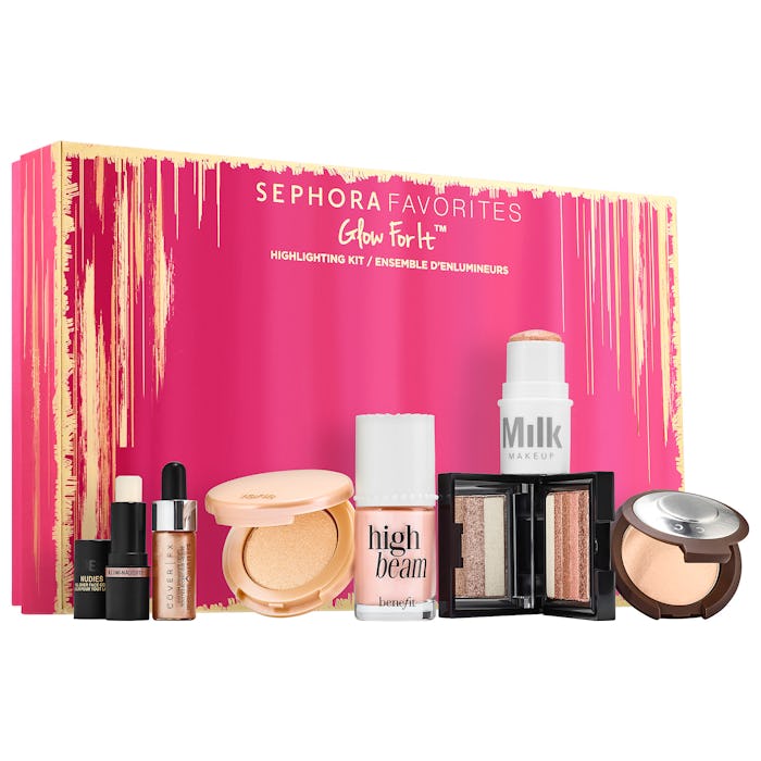 With a retail value of $106, this set is bound to banish the winter blahs. Includes a BECCA Shimmering Skin Perfector, Benefit Cosmetics High Beam, Bobbi Brown Mini Shimmer Brick, Cover FX Custom Enhancer Drops, NUDESTIX Nudies, Milk Makeup Highlighter and tarte Amazonian Clay 12-Hour Highlighter.
