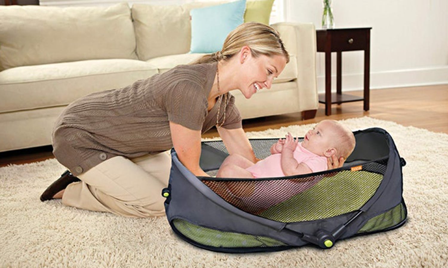 Instead of setting your baby down from the top, Guava's clever travel crib has a mesh door on the side for sliding your baby right into bed. Because of its design, it works especially well for older babies and young toddlers who try to climb out of their crib, preventing any potential injuries. You can, however, zip up the door and use it for newborns as well. Made with breathable mesh, this crib can be assembled in 15 seconds and reviewers vouch for how easy it is to set up. It doubles as a play area (babies will love the door) and comes with a carrying case that can be worn as a backpack.