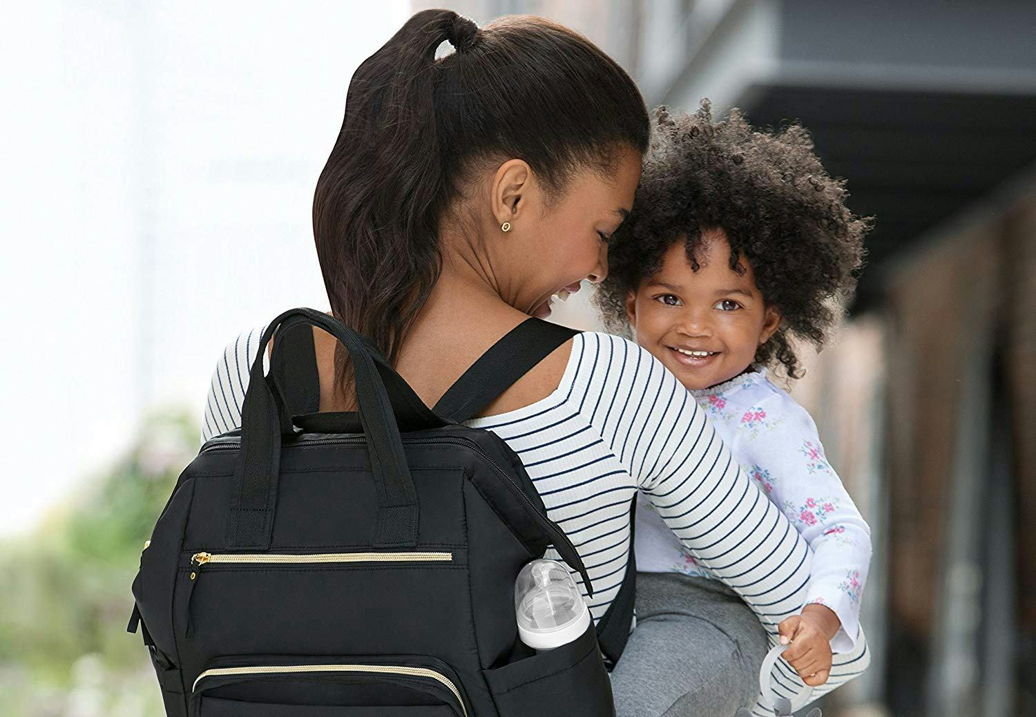 Enthusiastic Amazon review: "I’m so sad we’ve gone a whole year of having babies without this bag!!! It has so many great reviews, and they all point out exactly why it’s such a necessity—the zipper pocket in the back to easily access the stuff at the bottom of the bag, the wipe/tissue pocket on the side, a place to put a water bottle, insulated pockets to keep bottles, and a handy USB charging port. There really is a pocket for just about anything, and it feels nice to finally have a diaper bag that can be organized and not a total mess all the time!"