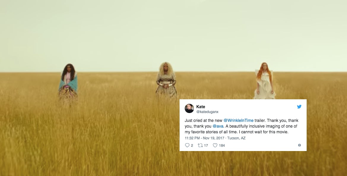 The clip has all the makings of a gorgeous other-worldly fantasy film, but in 2016, DuVernay told Vanity Fair that it was always important to her that the film also show a multicultural cast not often seen in a big-budget movie. While the original book has a predominantly-white cast of characters, Meg, for example, is a "mixed-race girl of African-American and Caucasian descent" in the film. And in July, DuVernay told Entertainment Weekly why it was important to her that the lead character be a young girl with brown skin. She said,