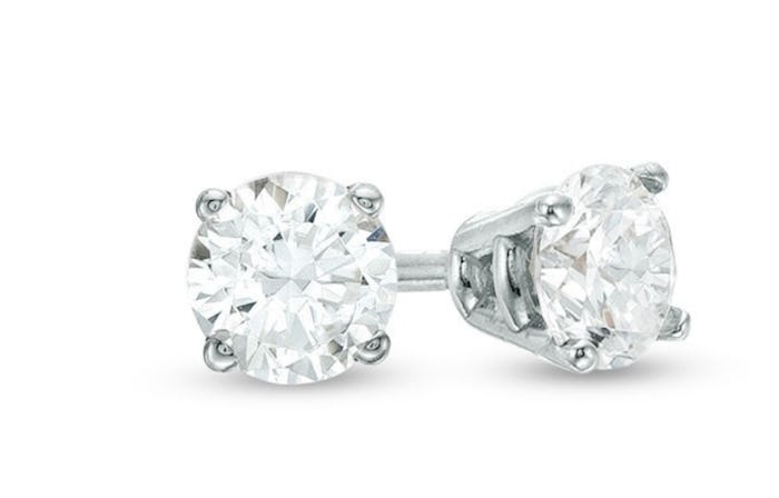 Diamond Solitaire Stud Earrings in 10K White Gold, $100, Zales