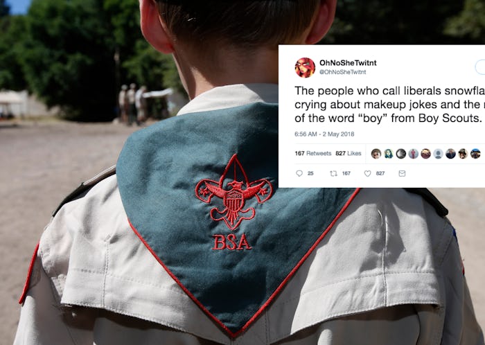 As for what's different about Wednesday's argument, it seems there's a lot more talk about what this means for "masculinity." "The war on boys and men continue," one person on Twitter penned. "It looks like we have reached the end of the road with the Boy Scouts. The organization has decided to drop “boys” from its name. The war on masculinity continues. There are no places for boys or men to escape the scourge called feminism."