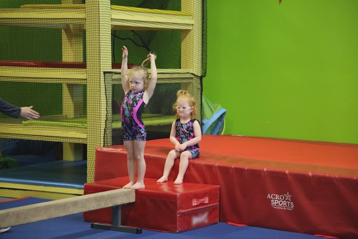 Adam worries that the class is perhaps slightly advanced for three-year-olds, but Parker takes to yoga relatively quickly. She's the first of the quints to adopt the leg pose, and she cycles through all the rest of them with ease. She does bridges, downward dogs, upward-facing dogs, all of it. I half-expected her to step to the front of the room and start teaching the class. She's a total natural, which impresses her parents, as well as her aunt.