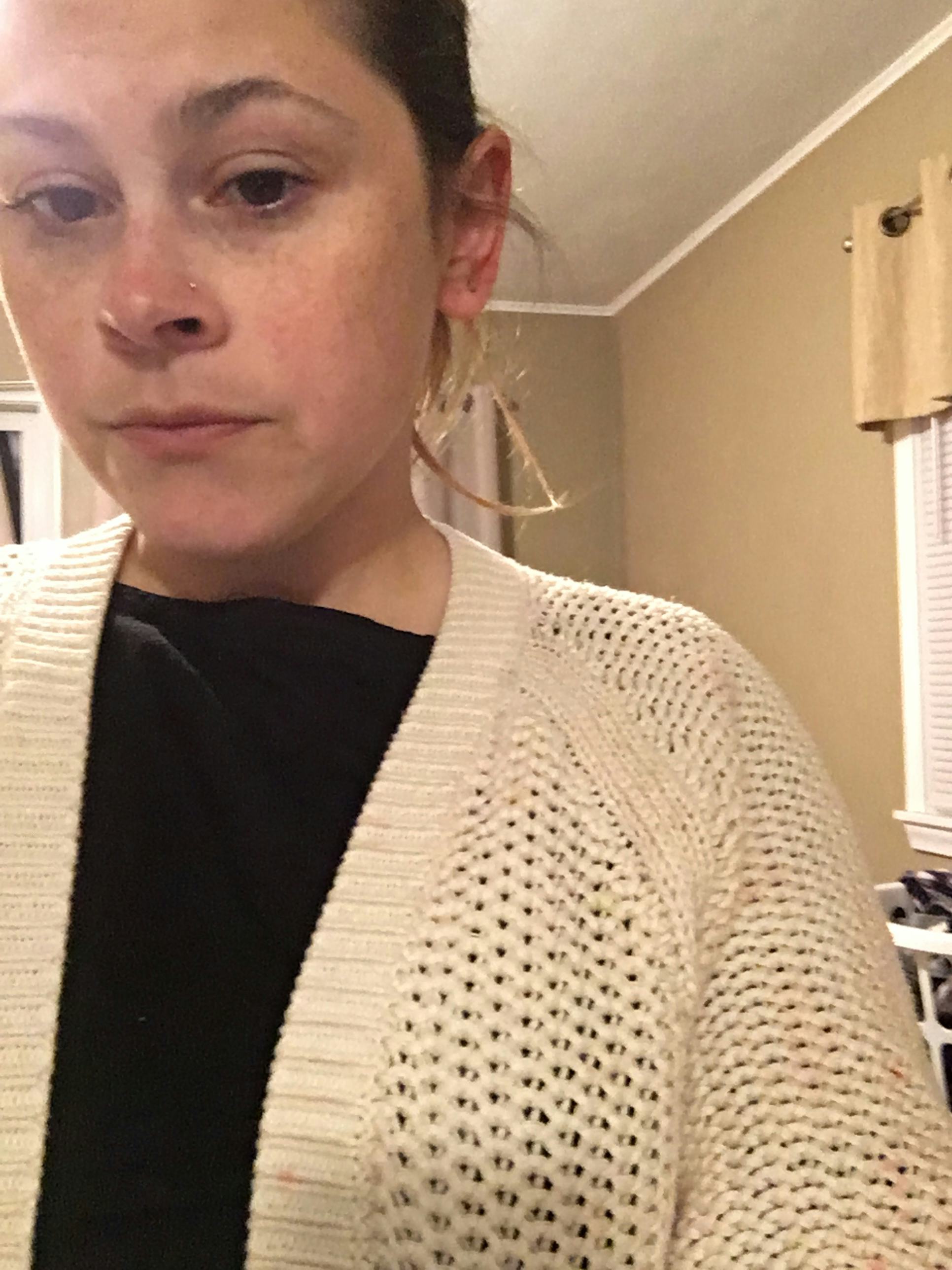During the early stages of my pregnancy, I made a trip with my husband to the Gap in downtown Chicago. Inside that huge, multi-level Gap store, I found a sweater on sale that I immediately knew I had to have. It was expensive — about $40, even though it was on clearance. But it was super comfortable and fit me like an oversized men’s cardigan. It hung off my shoulders, my hips, my backside. I felt like I looked like an Olsen twin. I told my husband that it would be the piece of clothing that would carry me throughout my pregnancy. He said that sounded like it was worth at least $40.