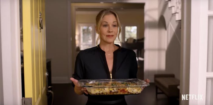 The series has been described by Deadline as a dark comedy; though the premise is grounded in grief, there's still a lot of humor to be found in the story. The trailer makes that clear from the jump, when Jen answers the door to find a neighbor bearing casseroles and platitudes. "Jeff and I can't imagine what you're going through," the neighbor offers, to which Jen replies, rife with sarcasm, "Well, it's like if Jeff got hit by a car and died, suddenly and violently. Like that." Then she closes the door in the woman's face.