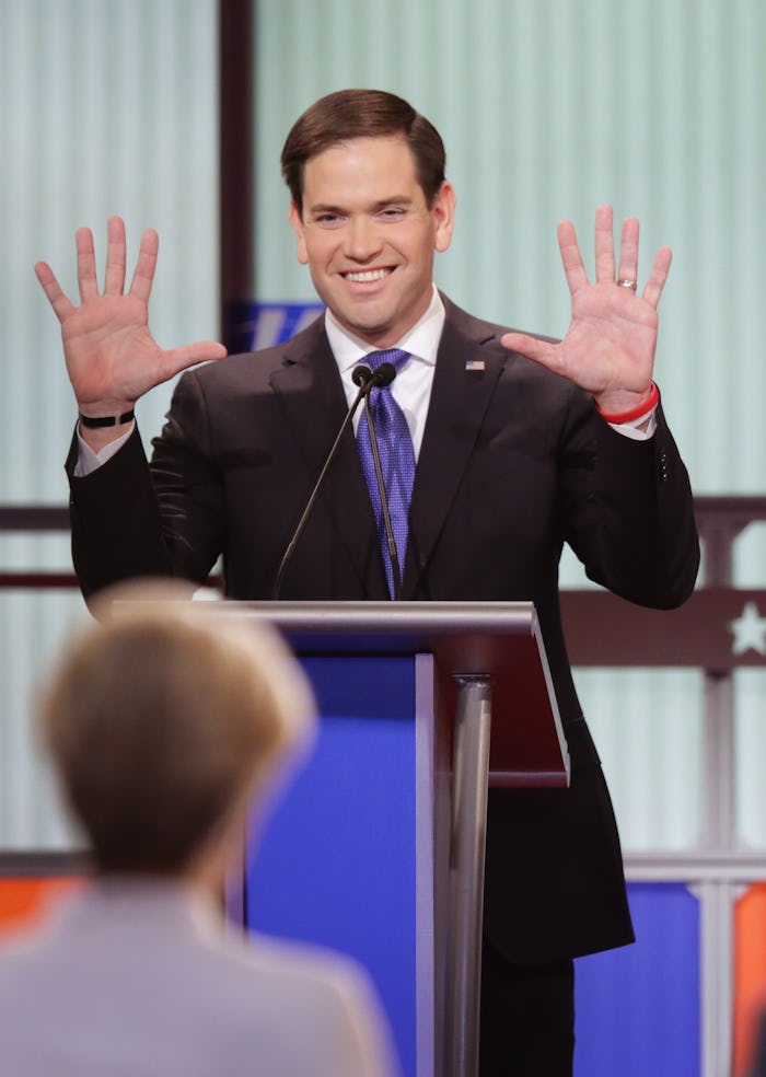 "He hit my hands. Nobody has ever hit my hands," Trump bewilderingly remarked early in the night, referring to Rubio's insults against his "small" hands. "[He insinuated that] something else must be small. ... I guarantee you there’s no problem." Yikes.