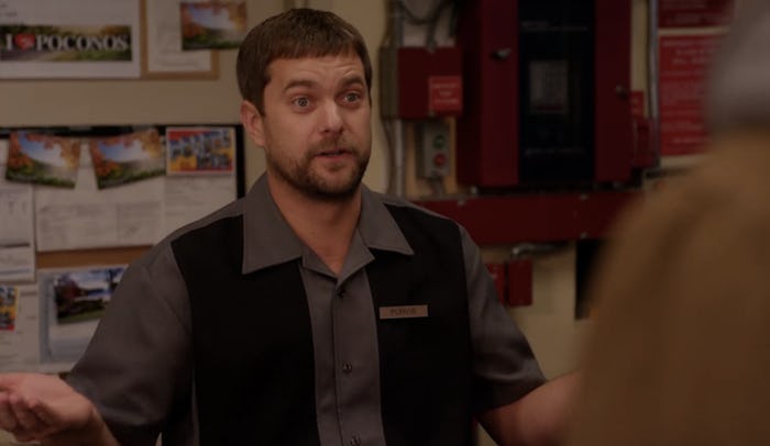Jackson— who does not play himself, but a clerk named "Purvis" — is spotted by Kimmy as she explains that she wants her weekend to be like when Dawson and Joey finally kissed at the end of Season 1 of Dawson's Creek. (Note: she's only seen the first season of the show, for totally normal "not weird reasons" like being abducted from normal life.) Jackson — sorry, Purvis — laughs at Kimmy's naivety towards Dawson's Creek, noting that Joey doesn't even end up with Dawson. (P.S. it still hurts me, a little.) Purvis proves to be quite the Dawson's Creek aficionado, even giving Pacey's "doughy little boy body" a shout out during reasons Joey should have listed before having sex with Pacey during the class ski trip.