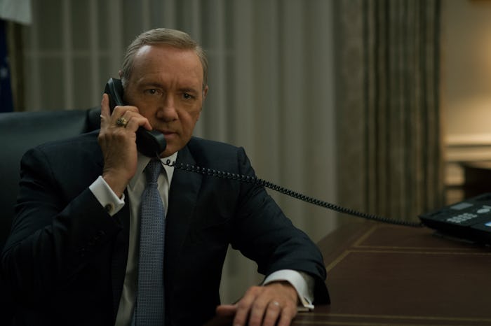 Unfortunately for Frank, right after he gives his statement, a photo of him shaking hands with a Civil War reenactor (an event you may recall from ye olde Frank-pissing-on-his-father's-grave episode) gets leaked. Needless to say, Frank loses his home state of South Carolina in the primaries — an embarrassment for any candidate. Again, this is not a good time for Underwood 2016.