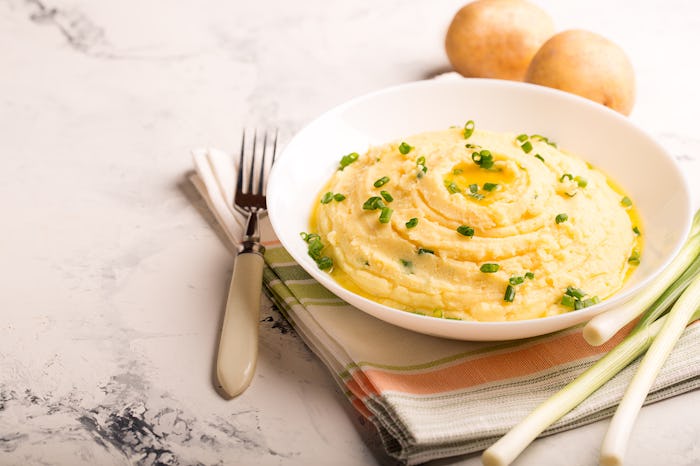Thanksgiving just isn't really Thanksgiving without a heaping scoop of mashed potatoes on your plate, now is it? It's one of the ultimate indulgences, all swimming with cream and butter, perfectly salty and starchy. If you're a new mom and breastfeeding, it's extra great — your body can handle the extra influx of calories that something like a spoonful of mashed potatoes provides. But also if you're breastfeeding, you're probably also looking for little ways to boost your milk supply, so you might be pleased to know that there's a mashed potatoes recipe that might increase your milk supply this Thanksgiving. Grab your sack of potatoes, a heavy pot, and your masher and head to the kitchen.