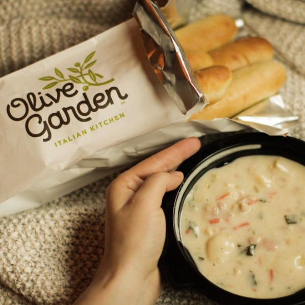 Towards the tail end of pregnancy, things start to get a little bit uncomfortable. Your various limbs can feel swollen, you're tired and maybe not sleeping super well, and you're just over it. And though I suppose nine months isn't that long in the grand scheme of things, that stretch of time (especially toward the end when you're not-so-patiently waiting to meet your new little one) can feel interminable. If you've hit that point and are looking for ways to move the process along, take yourself out to lunch (or dinner) for the Olive Garden order to induce labor.
