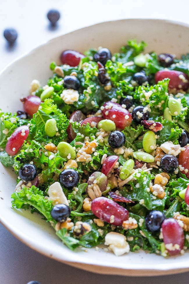 The great thing about this salad is that if you prefer spinach over kale, strawberries to blueberries, avocado oil to olive oil (or any other swap,) you can easily just grab the ingredients you prefer and mix them all up in the perfect nutrition-packed salad of your dreams. Your growing baby (and their ever developing metabolism) will thank you for it too.