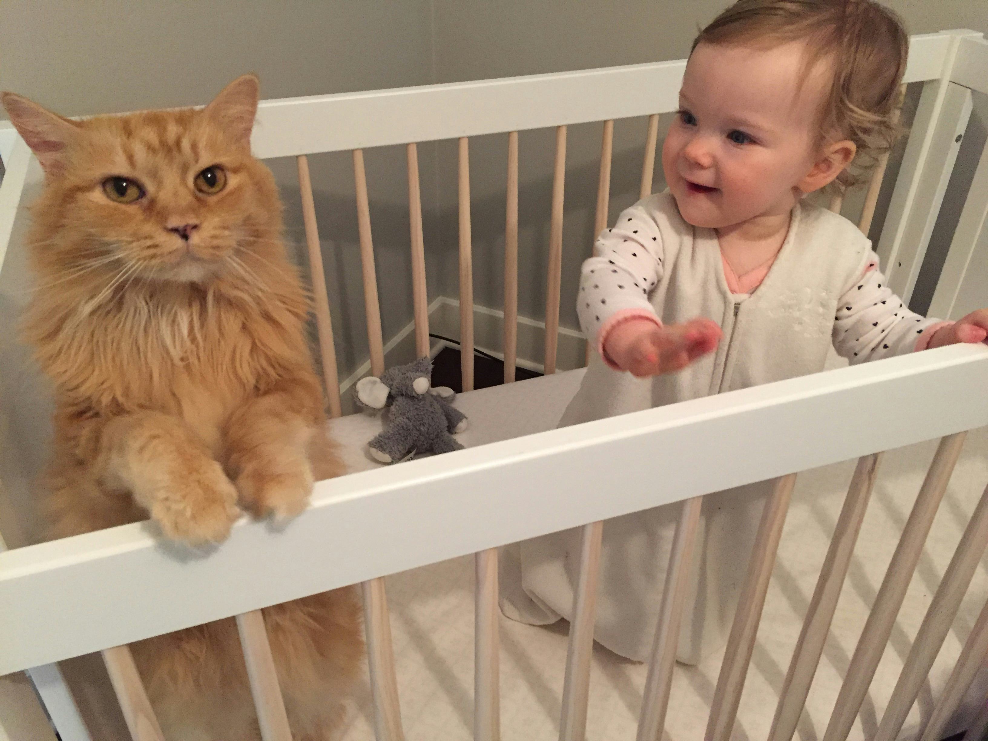 It's a lesson that we certainly learned that night as we sat in an animal hospital and felt totally helpless as we watched Madeline receive treatment from medical professionals. I never could have expected that our first lesson in being Claire’s parents would come from our cat. Luckily, Madeline emerged from the hospital and lived to create the friendship she has today with Claire. Turns out that, like parenting our tiny human, raising a furry family member can come with its share of surprises — and lessons — too.