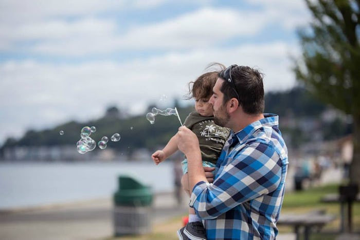 I've only been a mother for a year and a half, so I'm still learning and growing and attempting to navigate parenthood as sanely and successfully as possible. As I continue to master the struggles of motherhood, I am also learning about fatherhood via my partner. While we can't body swap, and wearing one another's shoes would do very little, we do get some insight into one another's roles; the socially constructed ones we feel pressured to adhere to, and the personal ones we've created for ourselves, based on what works for our family. And it is while watching and learning from my partner — and his interactions with our son, as well as society at large — that I've realized there's one thing we must stop saying about fatherhood.