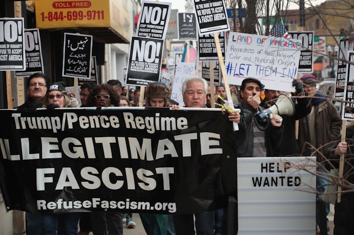 A poster seen at the United States Holocaust Museum in Washington D.C. stating the early warning signs of fascism went viral on Twitter last month, according to Mic, for a very scary reason — it draws similar parallels to our current political state, according to Complex. Fascism is, according to Merriam-Webster, a political philosophy "that exalts nation and often race above the individual and that stands for a centralized autocratic government headed by a dictatorial leader, severe economic and social regimentation, and forcible suppression of opposition." The White House did not respond to Romper's request for comment.