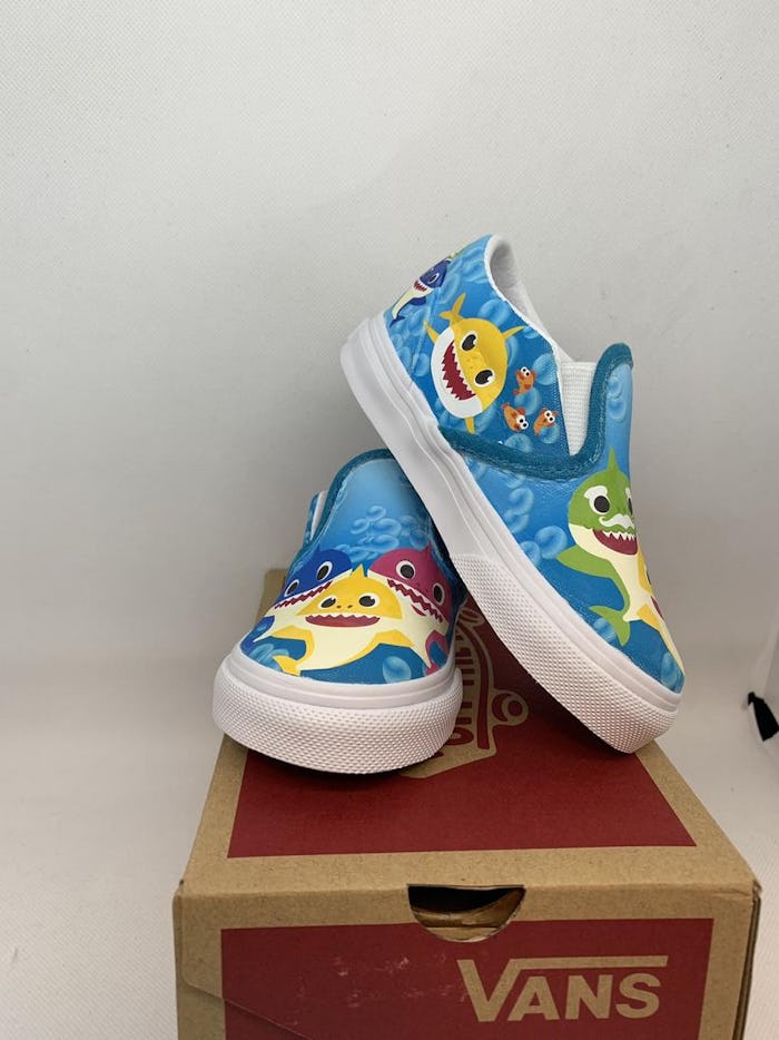 Just when you think you've seen every Baby Shark themed item imaginable, another adorable predator product pops up to feed your kiddo's ever growing love. This time, prepare to wow your toddler with custom Baby Shark Vans that come complete with illustrations of Mama, Daddy, Grandpa, and of course Baby Shark. Fingers crossed your little one doesn't grow out of them before they grow out of their love the viral toddler tune.