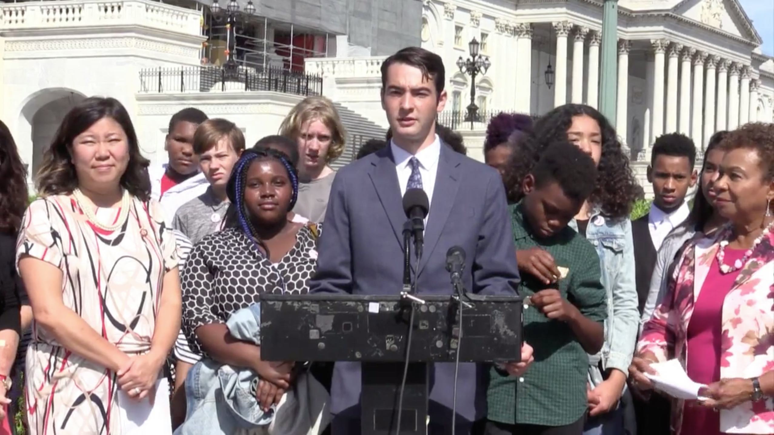 At least a dozen kids joined Lee on Sept. 19 to discuss the need for climate change education. Among them was youth climate advocate Jonah Gottlieb, a 17-year-old senior from Petaluma, California, who works with the National Children's Campaign and their environmental initiative, Schools for Climate Action. According to Gottlieb, students first began helping Lee and her team create the resolution back in June.