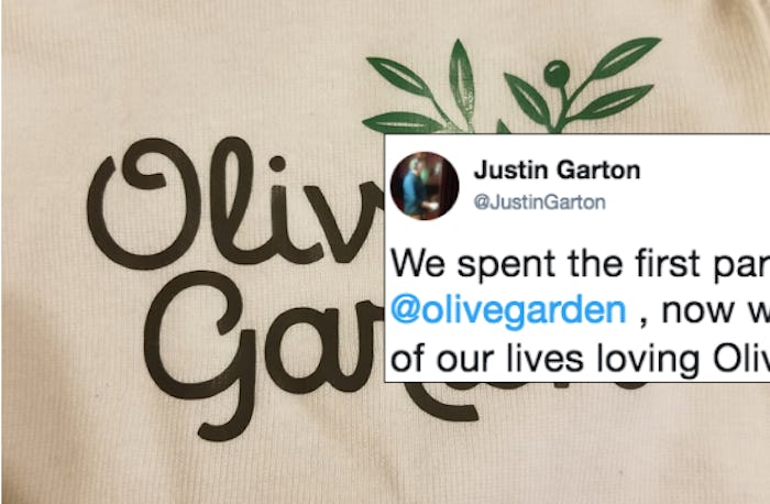 The couple's love story with the restaurant is certainly adorable, but it's also worth noting that the official Olive Garden account has taken notice of Garton's tweet and offered to give the couple some sort of free gift.