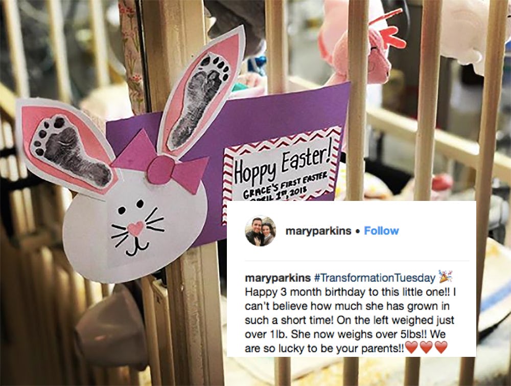 And on Tuesday, Parkinson decided to celebrate Grace's progress with a side-by-side snap of her "transformation," a post that many parents out there are finding inspiring. "#TransformationTuesday Happy 3 month birthday to this little one," Parkinson captioned the pics, according to Instagram. "I can’t believe how much she has grown in such a short time! On the left weighed just over 1lb. She now weighs over 5lbs!! We are so lucky to be your parents!!