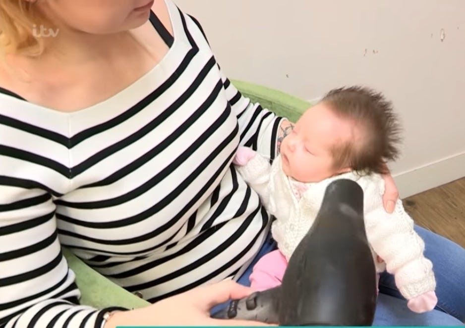 Watching the whole process will certainly make you green with envy, but what will make you crumble with cuteness is baby Amelia’s totally relaxed state of mind while her mom blow drys her hair. “She loves it,” Marsh told This Morning hosts Phillip Schofield and Holly Willoughby, adding that the white noise immediately soothes her.