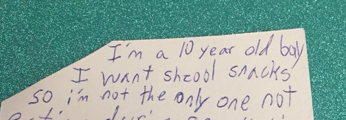 The holidays are an especially fun time if you have children. But, there are tons of kids out there in need who won't be making huge lists for Santa or getting to eat all the cookies and candy they want. If you need some inspiration to start your giving this season, just read this 10-year-old boy's Christmas wish for school snacks. It will break your heart and make you want to dive straight into donation mode.