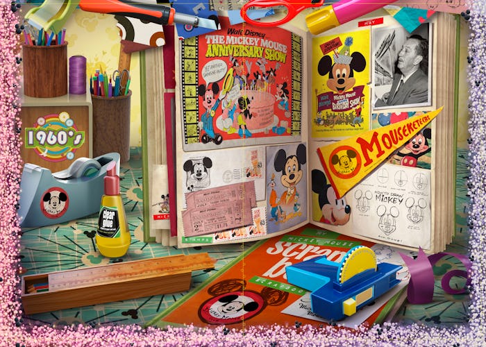 Each individual Mickey puzzle, or panel, showcases a different Mickey vignette. "The Mickey Through the Years puzzle was created to represent the perspective of a life-long Mickey Mouse fan. The puzzle follows the beloved mouse’s evolution through nine decades, creating a scrapbook for each decade of his career," explains Filip Franke, CEO, Ravensburger North America, in an interview with Romper.