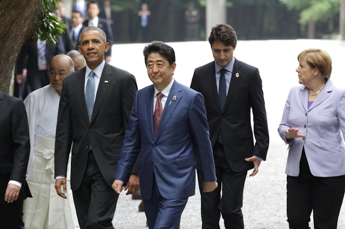 The thread, shared by writer Oliver Willis Tuesday night, begins with a photo of Obama greeting German Chancellor Angela Merkel and Canadian Prime Minister Justin Trudeau. The pic alone is enough to cause some major nostalgia for the days when the POTUS actually got along with other world leaders, but Willis is only just getting started. In follow-up posts, he adds Macron and Mexican President Enrique Peña Nieto (certainly no supporter of Trump, thanks to the back and forth over the proposed border wall between the two countries), both of whom appear totally ready to accept the challenge placed before them: