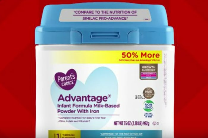 On Friday, the Food and Drug Administration issued a voluntary recall nationwide for over 23,000 35 ounce containers of Parent's Choice Advantage Infant Formula Milk-Based Powder with Iron. These formula tubs, produced by Perrigo Company, were sold exclusively at Walmart stores across the United States, according to People. A representative for Perrigo Company did not respond to Romper's request for comment at this time.