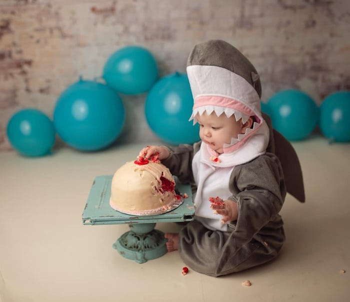 This Baby Shark Cake Smash Is Equal Parts Sweet & Scary For Breastfeeding Moms