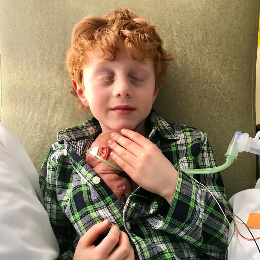 When Mikey came to the hospital to meet his little brother, it was love at first sight. However, he had to wait a week and a half before he was allowed to hold him. On March 17, Mikey became the first person to do skin-to-skin with a baby sibling at the Beth Israel NICU in Boston, according to Jessica. She wrote: