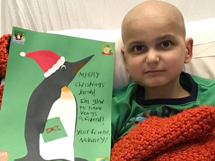 Thompson's mother, Michelle Thompson Simard, and his family have decided to help the 9-year-old boy celebrate Christmas early, and to do so, has asked the public to send in holiday cards. Thompson Simard wrote in Facebook post Wednesday that her son received his first card from his friend, Nolan, according to Fox News. A photo attached to the post showed a green construction paper card decorated with a penguin — Thompson's favorite animal, Fox News reported — with the message, "Merry Christmas, Jacob! I'm glad to have you as a friend!"