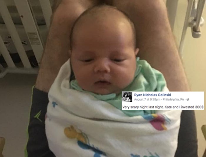 Golin wrote that the monitor said his baby's heart rate was 286, which is very high for such a tiny person. They reset the device three times and then finally headed to the hospital. Golin wrote:
