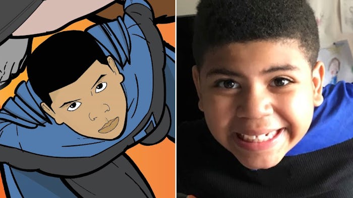 Romper spoke with Bradshaw to learn more about Jake Jetpulse, the superhero who Jake created at 4 years old, and who became the star of Bradshaw's educational comic books. Jake had a hard time learning his schoolwork after his diagnosis, Bradshaw tells Romper, and he did endless research to figure out ways to help his son.