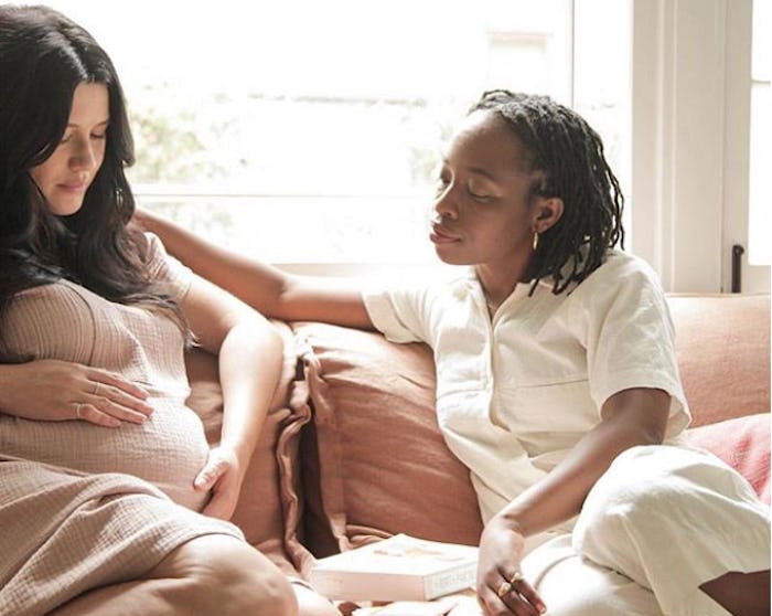 In addition to the classes, LOOM offers free meet-ups and drop-ins for women and families, and is building out an online presence so that women everywhere can access the information. Whitney Arrington 33, found LOOM on Instagram, and is currently in the "expecting" pathway. She attended her first private sessions with Cohen alongside her husband at 8 weeks pregnant when "the only person of authority to talk to about pregnancy" was her OB, as she explains to Romper. In Cohen, she says, "I felt like I had a really great therapy session and spoke to a really cool doula, who spoke to any fear" she had. Currently in her third trimester, Arrington says LOOM has connected her to other expectant couples around the same stage, and offered "a very body-mind-spirit approach to the transition into parenthood." On the phone, she says she feels excited and open and confident about birth.