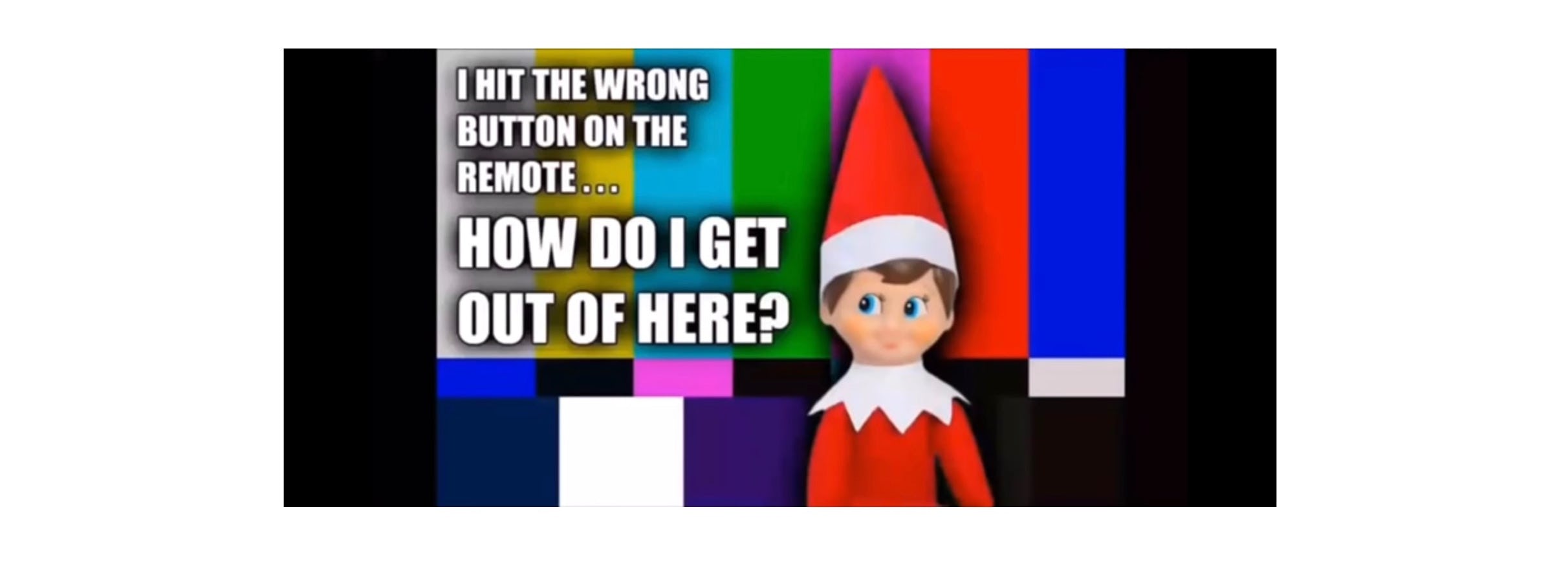 The video is actually just one image still, an Elf with the message, "I hit the wrong button on the remote... How do I get out of here?" Clever, right? When your child is waking up, play the video on your screen and they'll be shocked to see their Elf friend trapped in the television.