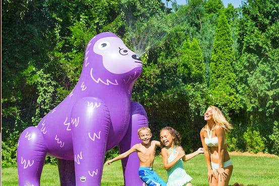 Kids will get a kick out of this giant inflatable sprinkler shaped like a ginormous purple ape that sprays water out of its mouth continuously, providing hours of non-stop sprinkler fun. You can order this massive inflatable ape sprinkler directly from the Big Mouth Toys website and have it delivered straight to your door. It's bright purple and stands over 7 feet tall, and if that's not enough to get you on board with putting this epic inflatable in your yard this summer, here are five reasons why you need a Ginormous Ape Yard Sprinkler in your life ASAP.