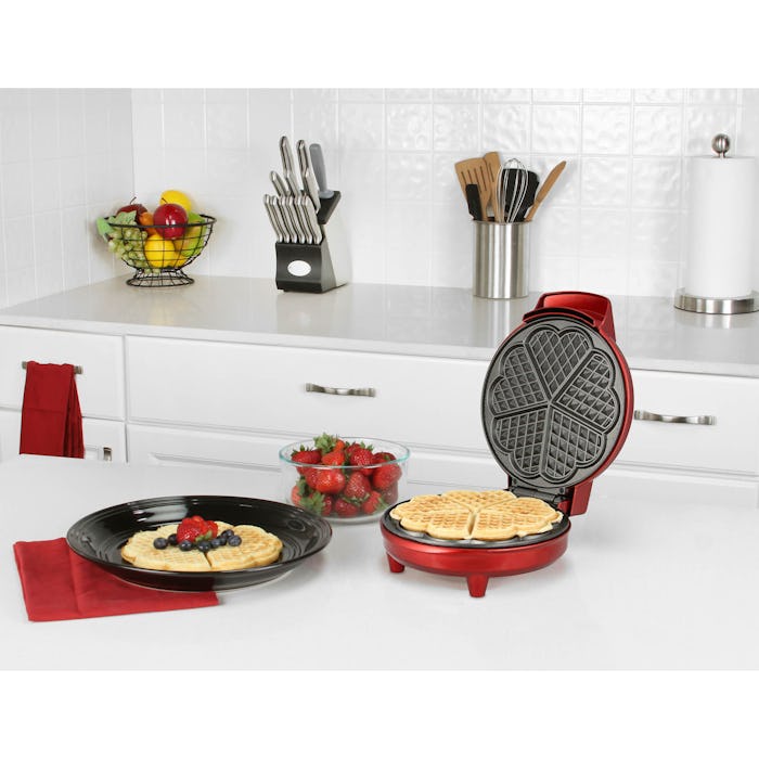 Breakfast in bed is pretty much the ultimate way to celebrate any holiday, but waffles in bed? Oh, Leslie Knope can tell you it's pure magic. There is nothing that sounds more delicious in the morning than a stack full of fluffy, just crisp enough waffles, and when you have an easy-to-use waffle maker, you can make them a daily thing. This Valentine's Day, BJ's heart-shaped waffle maker is really upping the breakfast game. Whether you use it solely on V-Day or to make a dreary Monday morning a little brighter, this waffle maker is going to make all of your breakfast dreams come true. (Seriously, my 4-year-old is going to lose her mind.