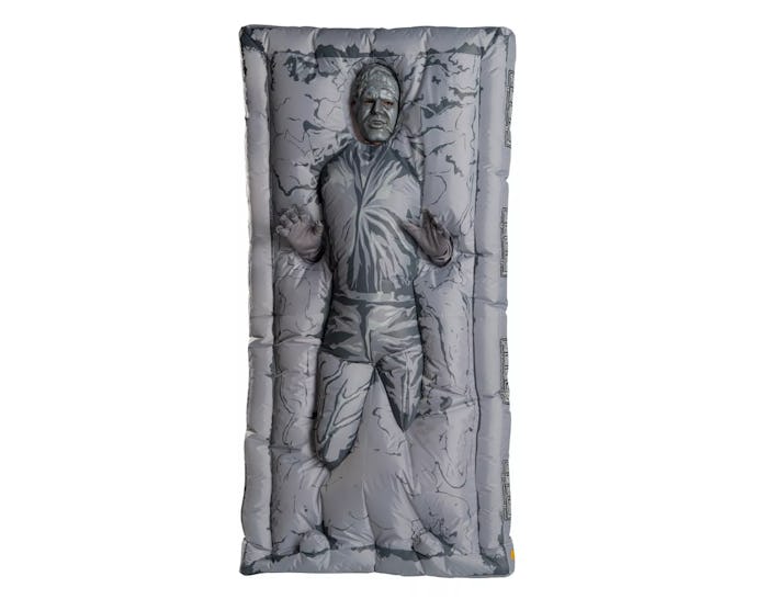 Ever been to a costume party and thought, "This is cool, but I'd rather be napping"? There's just no good way to ghost on a party to nap. Well thank the gods of George Lucas, because fate has smiled upon us with this inflatable Han Solo in carbonite costume. It's basically the perfect incognito napping costume for anyone who's exhausted after all the apple picking and trick-or-treating. Part air mattress, part costume, the Han Solo in carbonite costume is available at Target now.