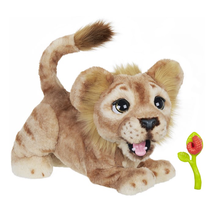 I believe most of the parents on the zoo carousel that day were around the same age as me and my husband, which means they were about 10 years old when the movie came out. Prime Disney-movie-viewing age, y'all. So of course everyone in our demo is probably super stoked about the new live action movie, and, consequently, this amazing interactive stuffed animal Simba, "powered by furReal technology." Available for pre-sale at Walmart for $100, Mighty Roar Simba will eventually be available at most major toy retailers, according to a press release.