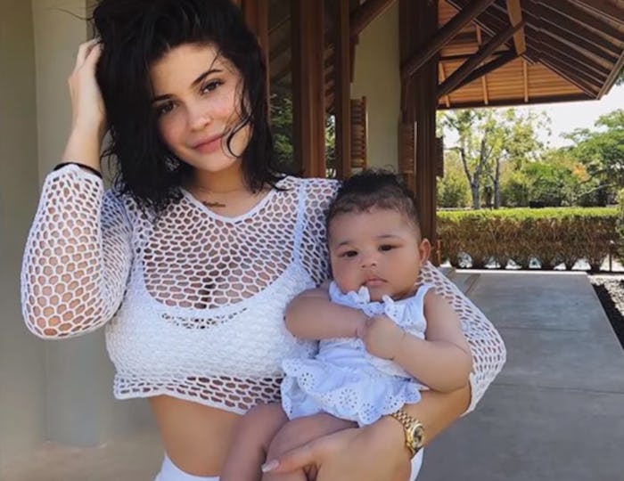 According to Sailor J, YouTube's foremost Zodiac makeup tutorial expert, Aquarians are usually named "something strange and eclectic like Willow or Tiger Lily," proving that Jenner did her research before signing that birth certificate. They also love piling on glittery eyeshadow, which is pretty convenient for a girl whose mother runs her own successful cosmetics line. And she's starting early, from the looks of it. According to E! Online, Stormi recently tried to steal a sparkly pink Kylie Cosmetics makeup bag from her honorary auntie, Jordyn Woods.