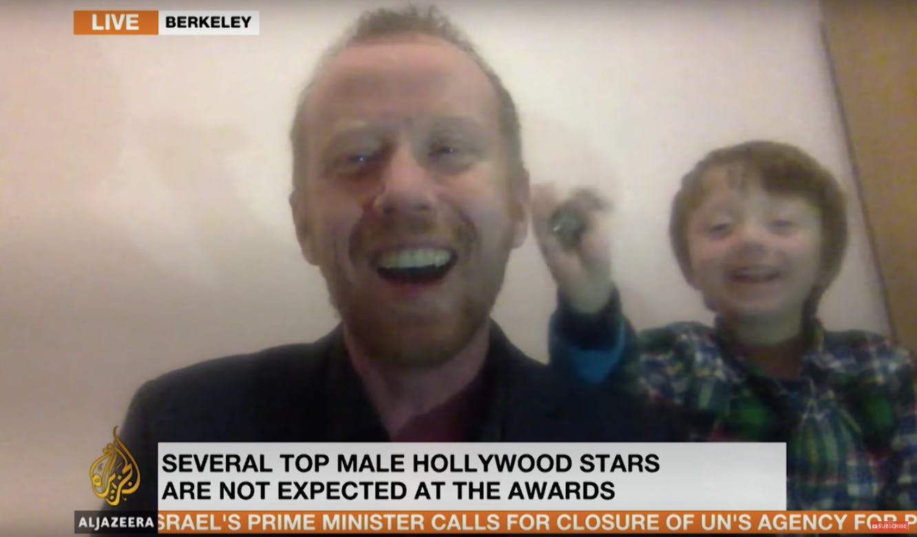 It's not easy working from home, as so many parents know all too well. Luckily, most people totally understand that kids don't really care about your conference call or your expert opinion, as this viral video of a 5-year-old kid crashing his dad's live TV interview shows. On Monday morning Daniel Smith-Rowsey, a film historian at St. Mary's College of California, was offering up some analysis on the Golden Globes to Al-Jazeera host Sohail Rahman. As Smith-Rowsey tried to talk about the awards show, his son Rainier slowly makes his way into the room.