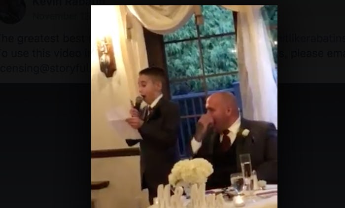 There is something about weddings that make them one of the most exciting parties that you'll ever get invited to. This could be for many reasons — the delicious food (including some great cake), the people in attendance, the dancing, or the act of gathering together in one place to celebrate the bride and groom's love for one another. The love that people have for the couple is one of the best parts about weddings, and is made all the more clear through speeches made throughout the night, especially when they're done by those super close to the couple. For example, take this kid who gave the most hilarious best man speech at his dad's wedding, which serves as proof that sons are definitely the original best men.