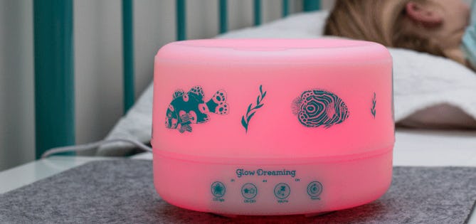 The lamp is called Glow Dreaming, and was designed by a sleep-deprived mom named Cara from Melbourne, Australia who was struggling to come up with a way to help her daughter (and her) get some rest. After trying to do just about everything she could think of, including redecorating her daughter's room and taking her to "Sleep school" (to be clear, her daughter was losing sleep because of a trauma she suffered, which is honestly so much harder), she decided to try to come up with a "master sleep aid." And with the help of some dilligent research and an official sound expert, Cara came up with the Glow Dreaming lamp.